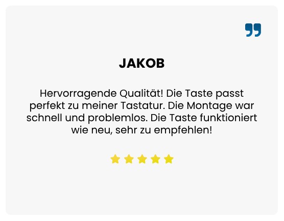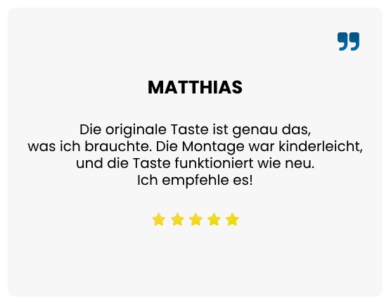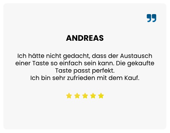 Die bestellte Taste passt perfekt. Die Austausch-Anleitung war sehr hilfreich, und alles funktioniert so, wie es soll.