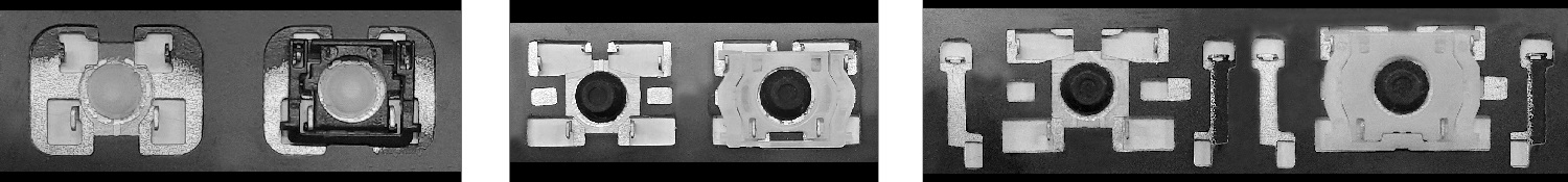- Bei den meisten Tastaturen, die von außen identisch aussehen, wurden unterschiedliche Arten von Scharnieren unter den Tasten verwendet.