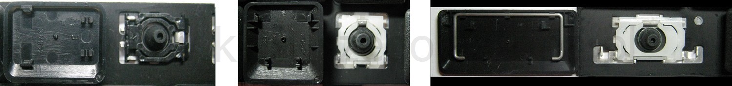 - Bei den meisten Tastaturen, die von außen identisch aussehen, wurden unterschiedliche Arten von Scharnieren unter den Tasten verwendet.