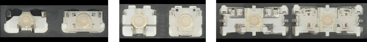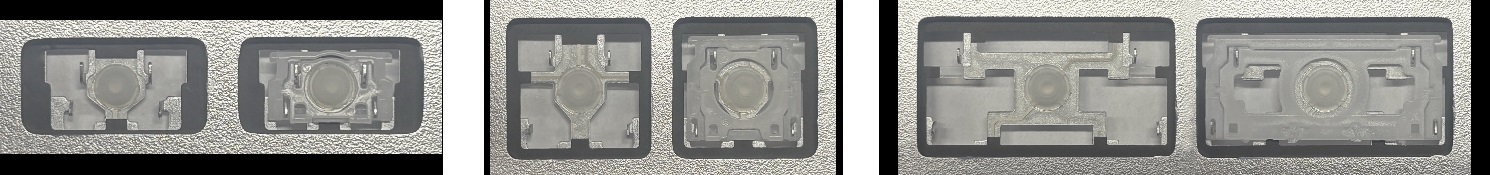- Bei den meisten Tastaturen, die von außen identisch aussehen, wurden unterschiedliche Arten von Scharnieren unter den Tasten verwendet.