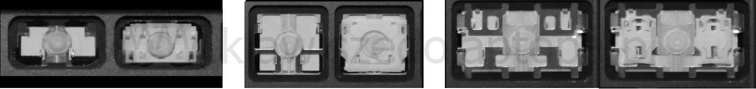 - Bei den meisten Tastaturen, die von außen identisch aussehen, wurden unterschiedliche Arten von Scharnieren unter den Tasten verwendet.