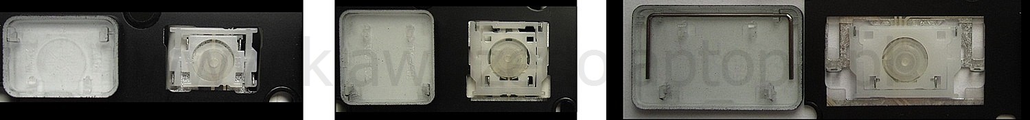 - Bei den meisten Tastaturen, die von außen identisch aussehen, wurden unterschiedliche Arten von Scharnieren unter den Tasten verwendet.