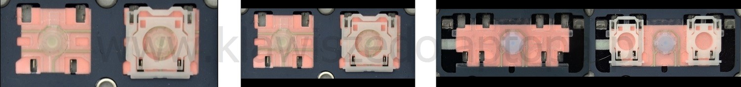 - Bei den meisten Tastaturen, die von außen identisch aussehen, wurden unterschiedliche Arten von Scharnieren unter den Tasten verwendet.