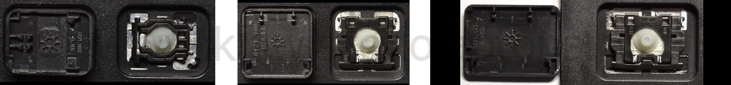 - Bei den meisten Tastaturen, die von außen identisch aussehen, wurden unterschiedliche Arten von Scharnieren unter den Tasten verwendet.
