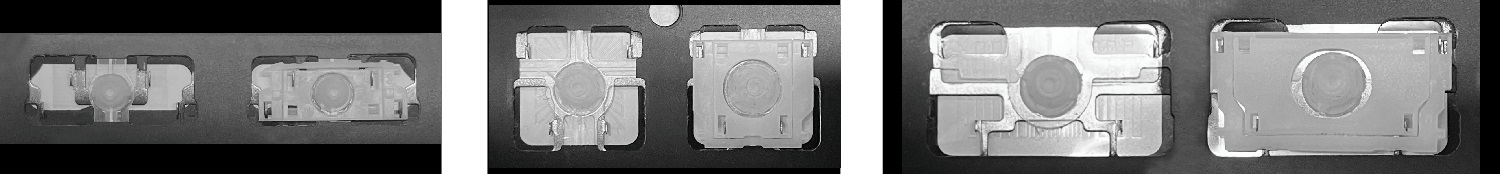 - Bei den meisten Tastaturen, die von außen identisch aussehen, wurden unterschiedliche Arten von Scharnieren unter den Tasten verwendet.