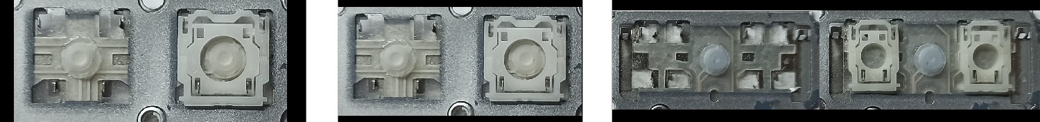 - Bei den meisten Tastaturen, die von außen identisch aussehen, wurden unterschiedliche Arten von Scharnieren unter den Tasten verwendet.