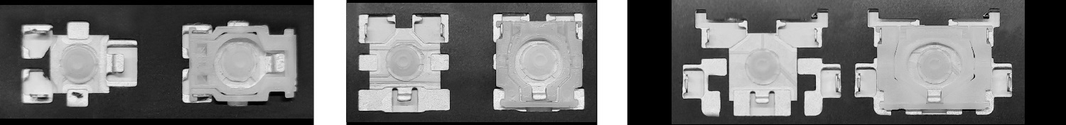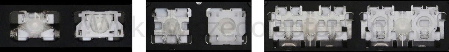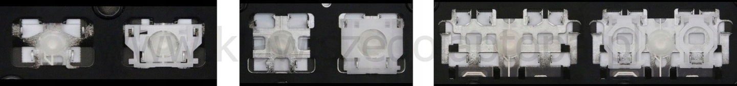 - Bei den meisten Tastaturen, die von außen identisch aussehen, wurden unterschiedliche Arten von Scharnieren unter den Tasten verwendet.