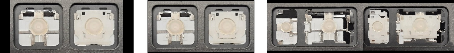 - Bei den meisten Tastaturen, die von außen identisch aussehen, wurden unterschiedliche Arten von Scharnieren unter den Tasten verwendet.