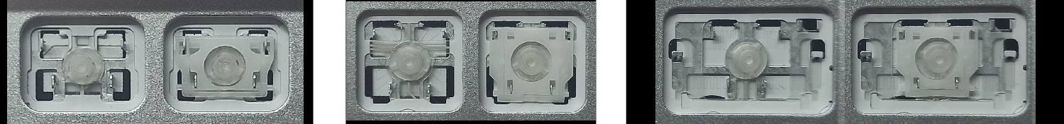 - Bei den meisten Tastaturen, die von außen identisch aussehen, wurden unterschiedliche Arten von Scharnieren unter den Tasten verwendet.