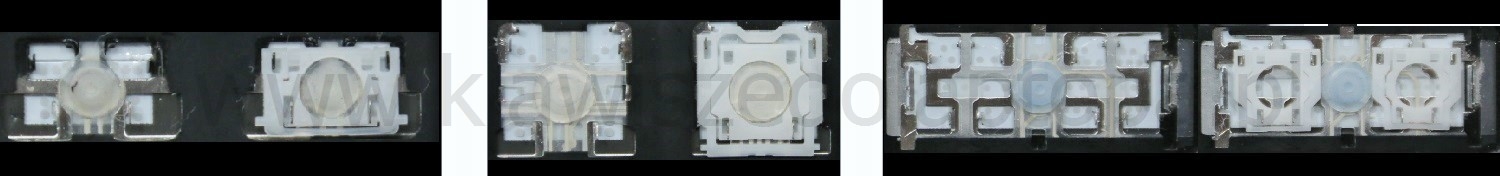- Bei den meisten Tastaturen, die von außen identisch aussehen, wurden unterschiedliche Arten von Scharnieren unter den Tasten verwendet.