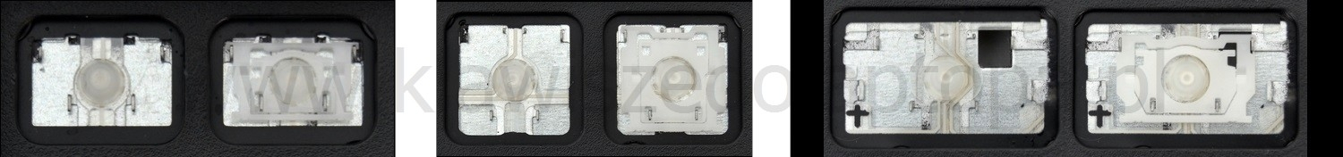 - Bei den meisten Tastaturen, die von außen identisch aussehen, wurden unterschiedliche Arten von Scharnieren unter den Tasten verwendet.