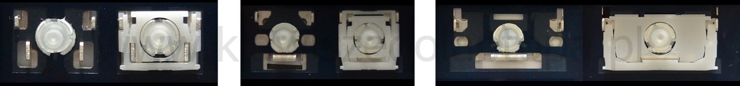 - Bei den meisten Tastaturen, die von außen identisch aussehen, wurden unterschiedliche Arten von Scharnieren unter den Tasten verwendet.