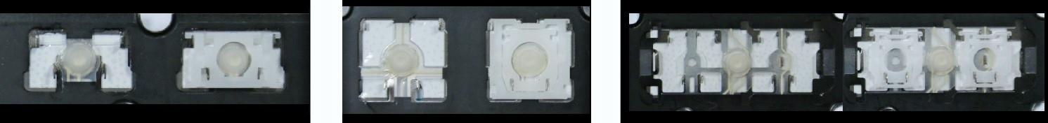 - Bei den meisten Tastaturen, die von außen identisch aussehen, wurden unterschiedliche Arten von Scharnieren unter den Tasten verwendet.