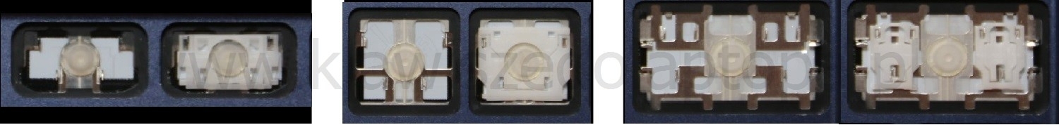 - Bei den meisten Tastaturen, die von außen identisch aussehen, wurden unterschiedliche Arten von Scharnieren unter den Tasten verwendet.