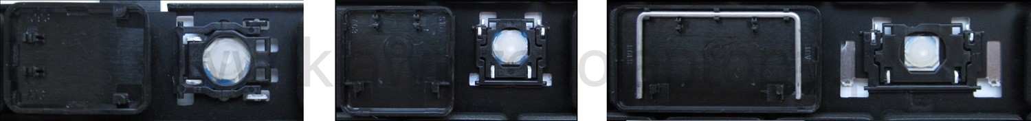 - Bei den meisten Tastaturen, die von außen identisch aussehen, wurden unterschiedliche Arten von Scharnieren unter den Tasten verwendet.