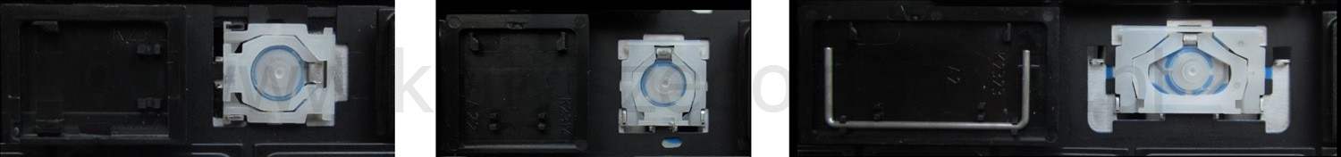 - Bei den meisten Tastaturen, die von außen identisch aussehen, wurden unterschiedliche Arten von Scharnieren unter den Tasten verwendet.