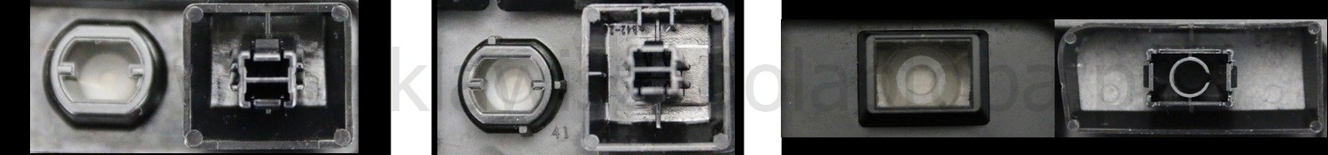 - Bei den meisten Tastaturen, die von außen identisch aussehen, wurden unterschiedliche Arten von Scharnieren unter den Tasten verwendet.