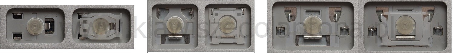 - Bei den meisten Tastaturen, die von außen identisch aussehen, wurden unterschiedliche Arten von Scharnieren unter den Tasten verwendet.