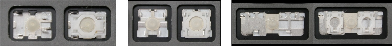 - Bei den meisten Tastaturen, die von außen identisch aussehen, wurden unterschiedliche Arten von Scharnieren unter den Tasten verwendet.