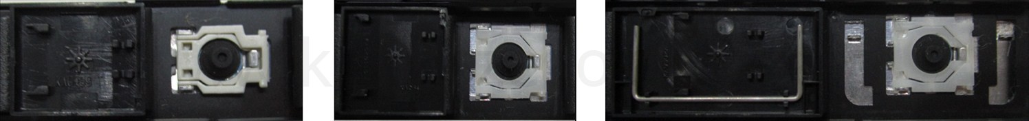 - Bei den meisten Tastaturen, die von außen identisch aussehen, wurden unterschiedliche Arten von Scharnieren unter den Tasten verwendet.