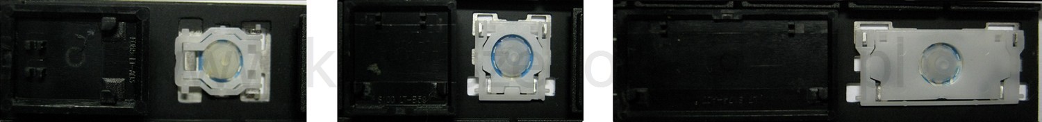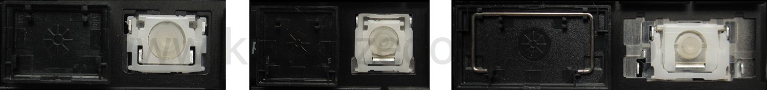 - Bei den meisten Tastaturen, die von außen identisch aussehen, wurden unterschiedliche Arten von Scharnieren unter den Tasten verwendet.
