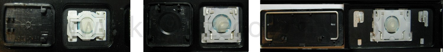 - Bei den meisten Tastaturen, die von außen identisch aussehen, wurden unterschiedliche Arten von Scharnieren unter den Tasten verwendet.