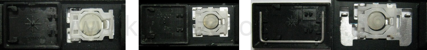 - Bei den meisten Tastaturen, die von außen identisch aussehen, wurden unterschiedliche Arten von Scharnieren unter den Tasten verwendet.