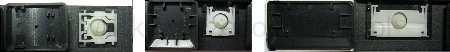 - Bei den meisten Tastaturen, die von außen identisch aussehen, wurden unterschiedliche Arten von Scharnieren unter den Tasten verwendet.