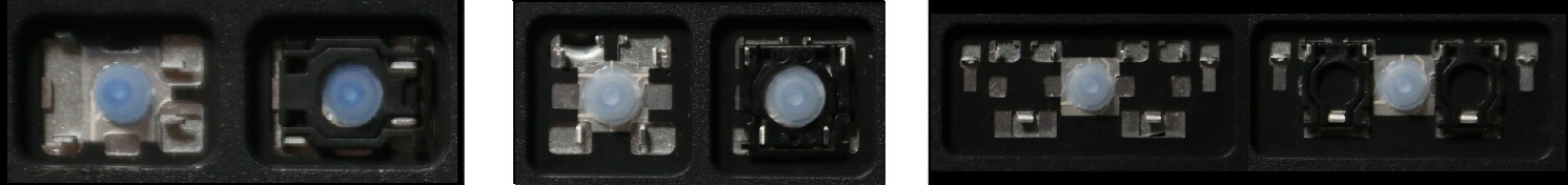 - Bei den meisten Tastaturen, die von außen identisch aussehen, wurden unterschiedliche Arten von Scharnieren unter den Tasten verwendet.