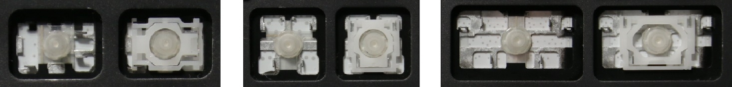 - Bei den meisten Tastaturen, die von außen identisch aussehen, wurden unterschiedliche Arten von Scharnieren unter den Tasten verwendet.