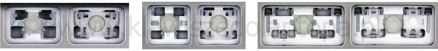 - Bei den meisten Tastaturen, die von außen identisch aussehen, wurden unterschiedliche Arten von Scharnieren unter den Tasten verwendet.