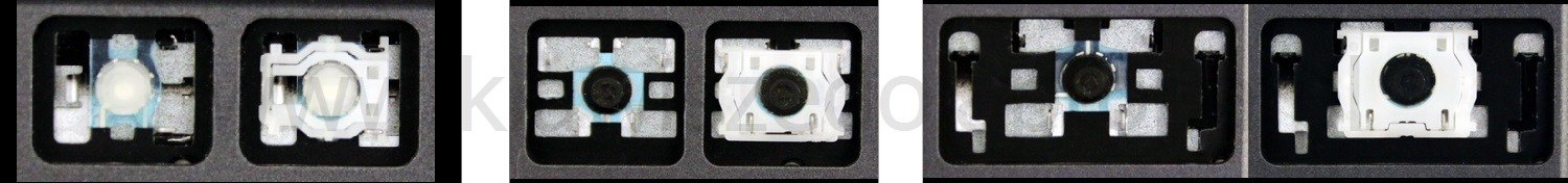 - Bei den meisten Tastaturen, die von außen identisch aussehen, wurden unterschiedliche Arten von Scharnieren unter den Tasten verwendet.