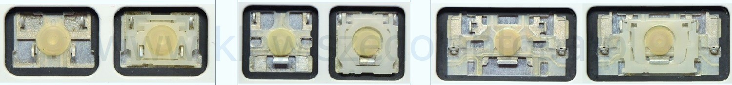 - Bei den meisten Tastaturen, die von außen identisch aussehen, wurden unterschiedliche Arten von Scharnieren unter den Tasten verwendet.