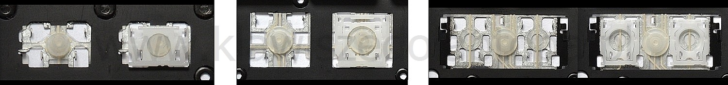 - Bei den meisten Tastaturen, die von außen identisch aussehen, wurden unterschiedliche Arten von Scharnieren unter den Tasten verwendet.