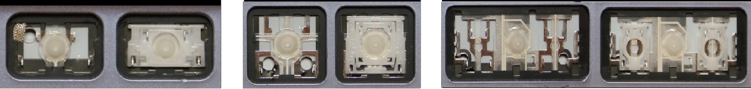 - Bei den meisten Tastaturen, die von außen identisch aussehen, wurden unterschiedliche Arten von Scharnieren unter den Tasten verwendet.
