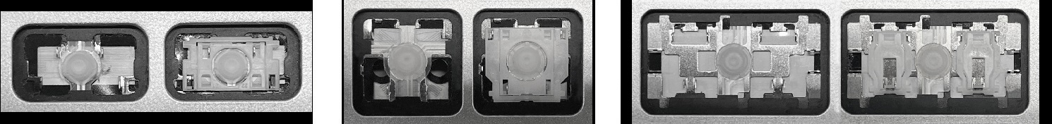 - Bei den meisten Tastaturen, die von außen identisch aussehen, wurden unterschiedliche Arten von Scharnieren unter den Tasten verwendet.