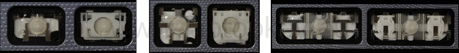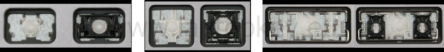 - Bei den meisten Tastaturen, die von außen identisch aussehen, wurden unterschiedliche Arten von Scharnieren unter den Tasten verwendet.