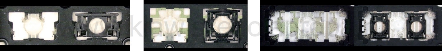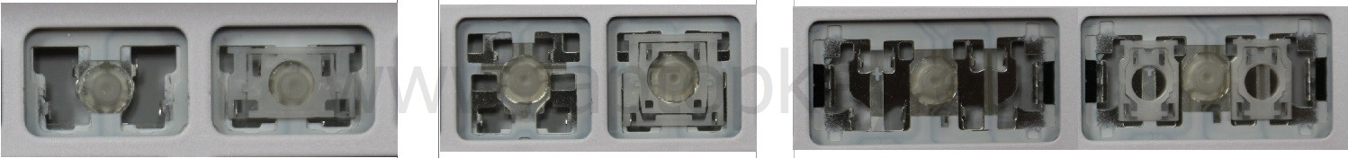 - Bei den meisten Tastaturen, die von außen identisch aussehen, wurden unterschiedliche Arten von Scharnieren unter den Tasten verwendet.