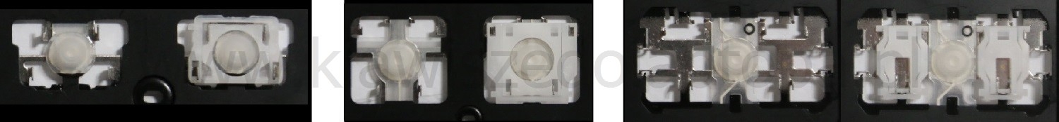 - Bei den meisten Tastaturen, die von außen identisch aussehen, wurden unterschiedliche Arten von Scharnieren unter den Tasten verwendet.