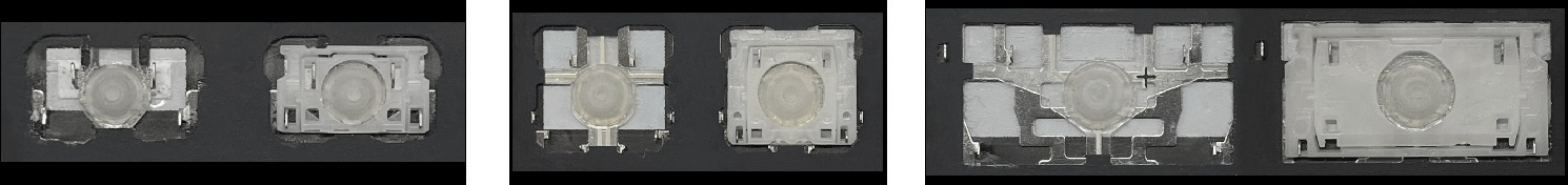 - Bei den meisten Tastaturen, die von außen identisch aussehen, wurden unterschiedliche Arten von Scharnieren unter den Tasten verwendet.