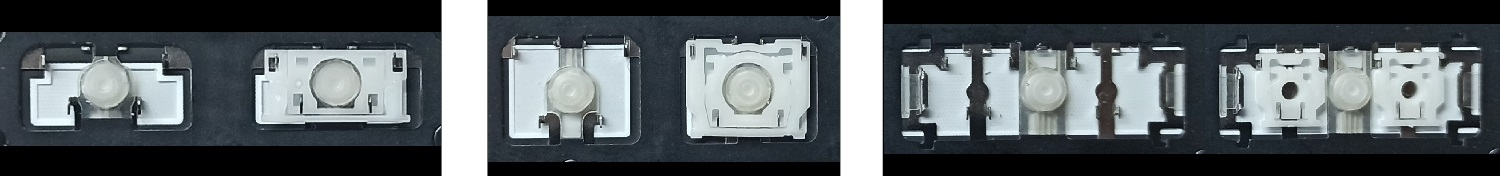 - Bei den meisten Tastaturen, die von außen identisch aussehen, wurden unterschiedliche Arten von Scharnieren unter den Tasten verwendet.