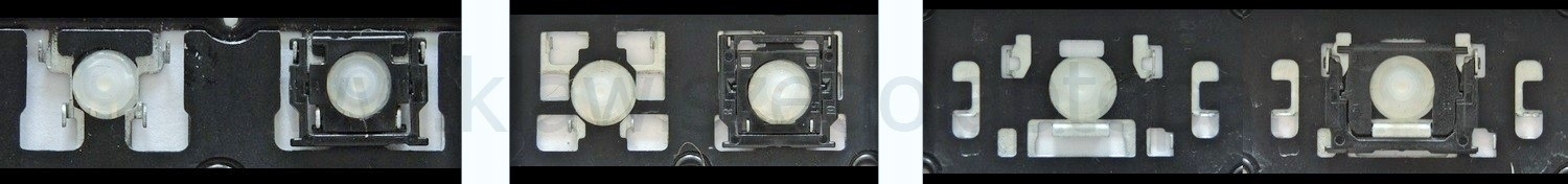 - Bei den meisten Tastaturen, die von außen identisch aussehen, wurden unterschiedliche Arten von Scharnieren unter den Tasten verwendet.