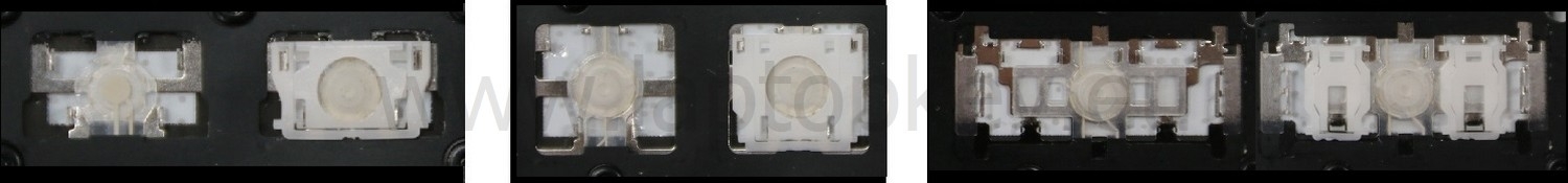 - Bei den meisten Tastaturen, die von außen identisch aussehen, wurden unterschiedliche Arten von Scharnieren unter den Tasten verwendet.