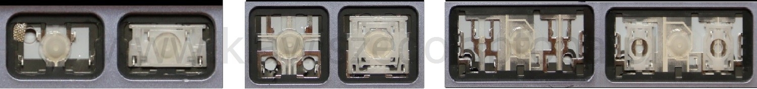 - Bei den meisten Tastaturen, die von außen identisch aussehen, wurden unterschiedliche Arten von Scharnieren unter den Tasten verwendet.