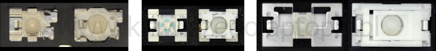 - Bei den meisten Tastaturen, die von außen identisch aussehen, wurden unterschiedliche Arten von Scharnieren unter den Tasten verwendet.