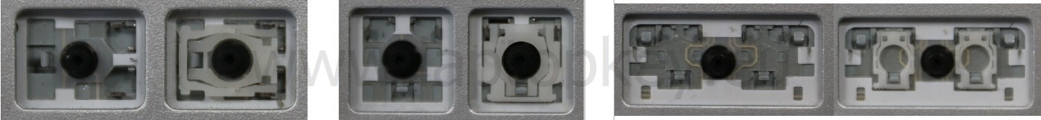 - Bei den meisten Tastaturen, die von außen identisch aussehen, wurden unterschiedliche Arten von Scharnieren unter den Tasten verwendet.