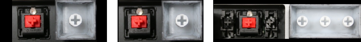 - Um das richtige Modell auszuwählen, vergleiche die freie Stelle auf deiner Tastatur mit den Abbildungen unten oder entferne die Taste „A“ – darunter befindet sich immer ein mittleres Scharnier.