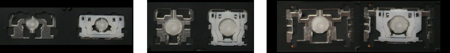 - Bei den meisten Tastaturen, die von außen identisch aussehen, wurden unterschiedliche Arten von Scharnieren unter den Tasten verwendet.