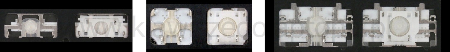 - Bei den meisten Tastaturen, die von außen identisch aussehen, wurden unterschiedliche Arten von Scharnieren unter den Tasten verwendet.