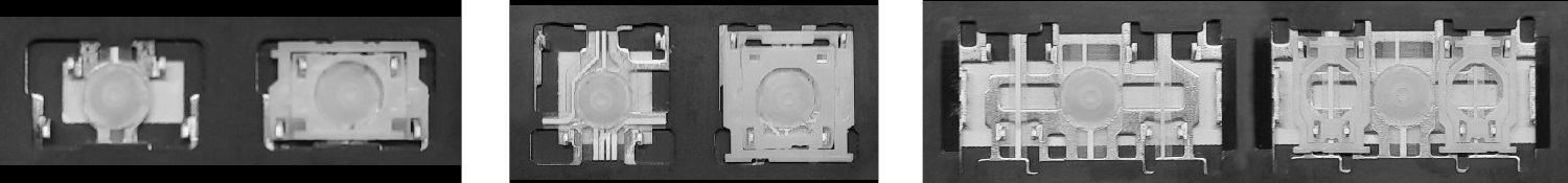 - Bei den meisten Tastaturen, die von außen identisch aussehen, wurden unterschiedliche Arten von Scharnieren unter den Tasten verwendet.